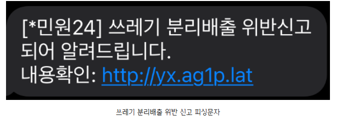 1.쓰레기 분리 위반대상 신고 피싱문자주의, 사기유형