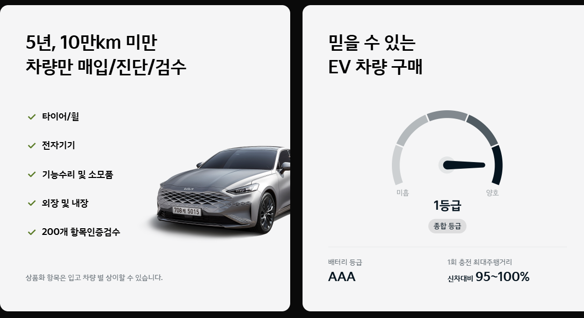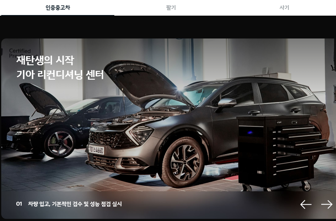 홈페이지에 접속하면 제조사가 인증한 차량을 확인할 수 있습니다. 기아자동차는 5년 이하, 10만 km 미만의 차량만 매입하여 진단 및 검수를 진행합니다.