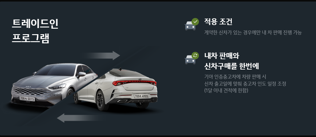1. 기아홈페이지내 간편한 내차 팔기 서비스와 신뢰할 수 있는 내차 사기 서비스를 이용할 수 있습니다.