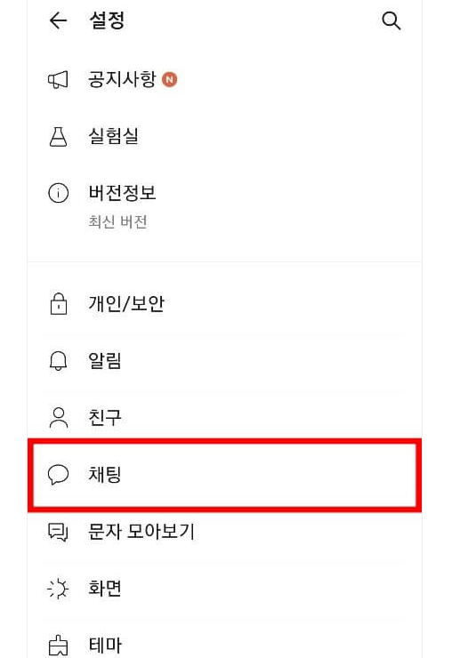 여기서 카카오톡에 있는 모든 설정을 하실 수 있습니다. 채팅목록에 들어가 줍니다.