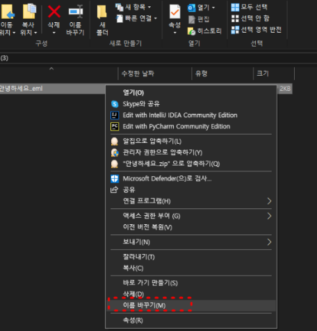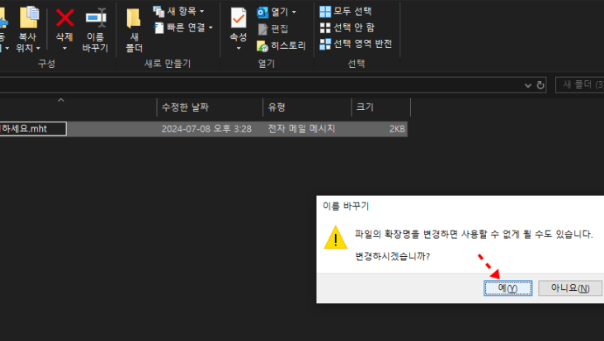 2. 파일 열기: EML 파일을 저장한 폴더로 이동합니다.
