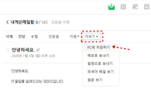 3. 이메일 본문 확인: 이메일의 본문과 일부 메타데이터를 텍스트 형식으로 확인할 수 있습니다.