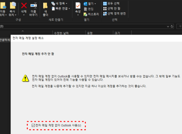 3. 파일 드래그: EML 파일을 드래그하여 Outlook 창으로 끌어옵니다.