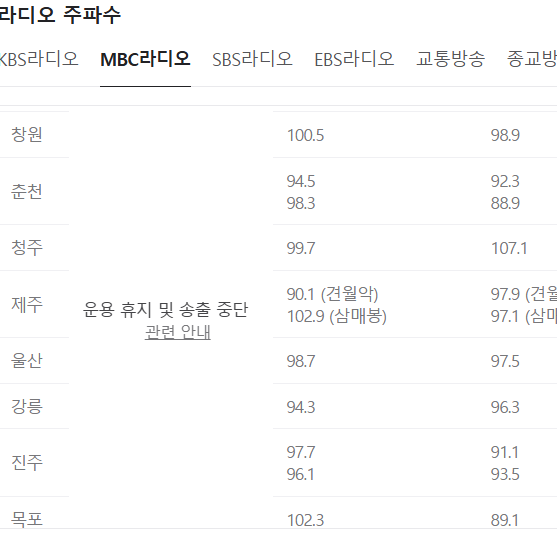 MBC 표준FM 라디오 프로그램 편성표