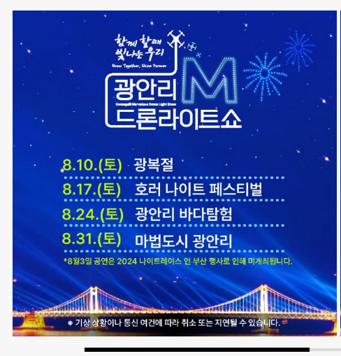 √ 주의사항 : 기상악화등의 이유로 취소될 수 있습니다. 자세한 사항은 수영구 공식인☆그램 확인하시면 됩니다.