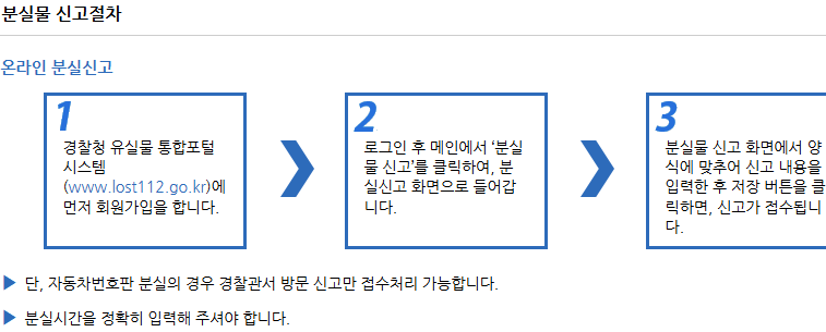 ※ 자동차번호판의 분실신고는 내방접수만 가능합니다.