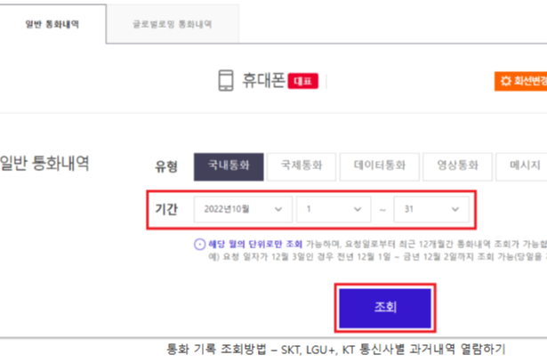 - 통신 내역 조회는 개인정보 보호를 위해 본인 인증 절차를 거쳐야 합니다.