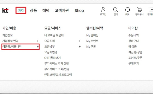 2. 로그인을 한 후에 '마이케이티' 메뉴로 이동합니다.