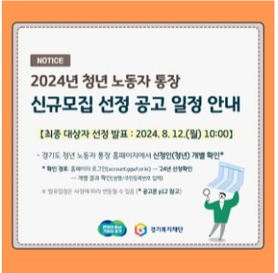 ※8월 12일 경기도 청년 노동자 통장 신청결과가 나왔는데요. 선정되신 분들은 축하드립니다.