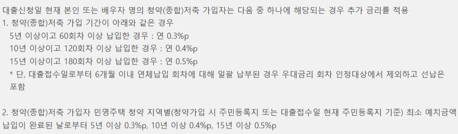 ① 청약(종합) 저축 가입자(본인 또는 배우자) 연 0.3% p ~ 연 0.5% p