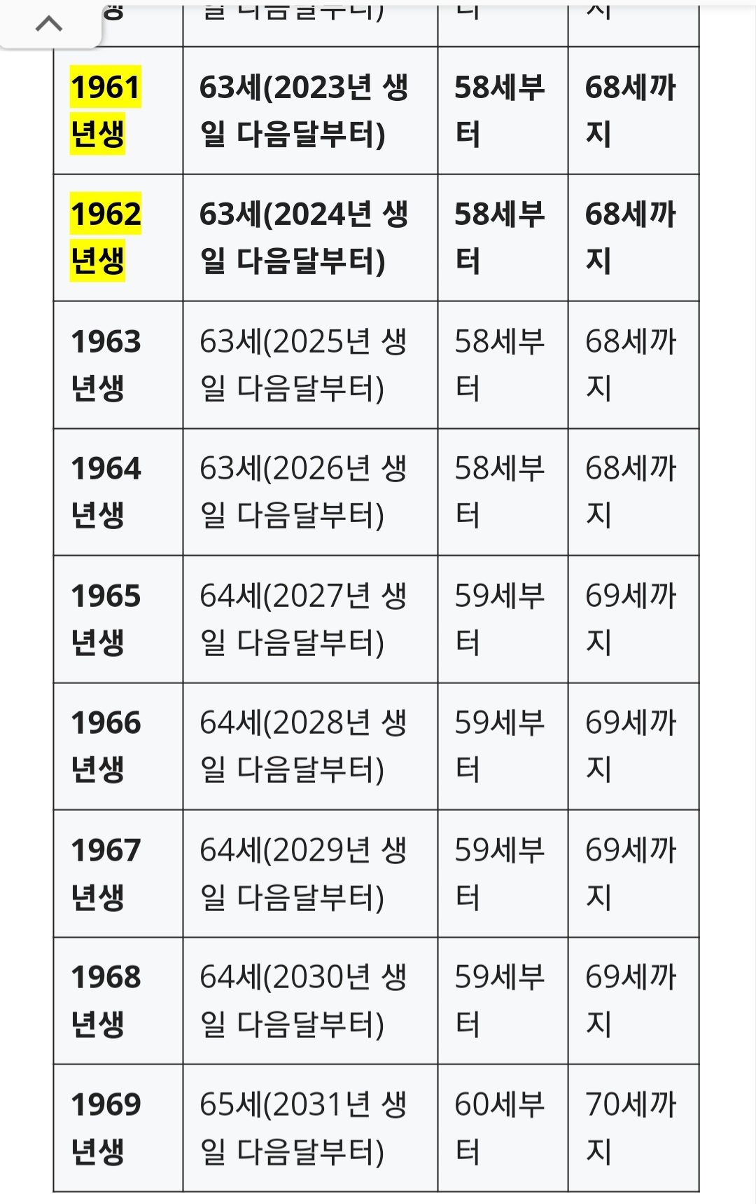 예를 들자면, 66년생 이 시라면64세에 받으실 수 있으며, 만약 조기수령을 원하시면 59세부터 가능하십니다.